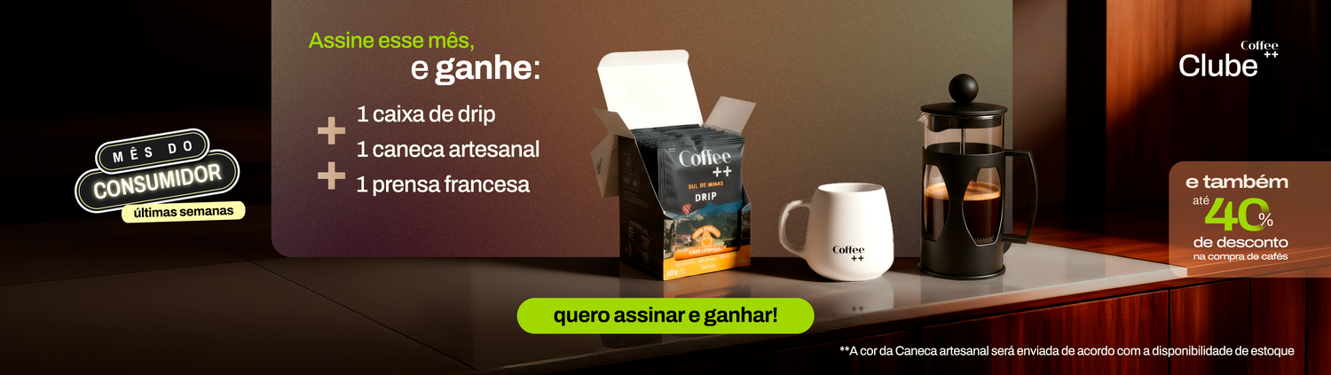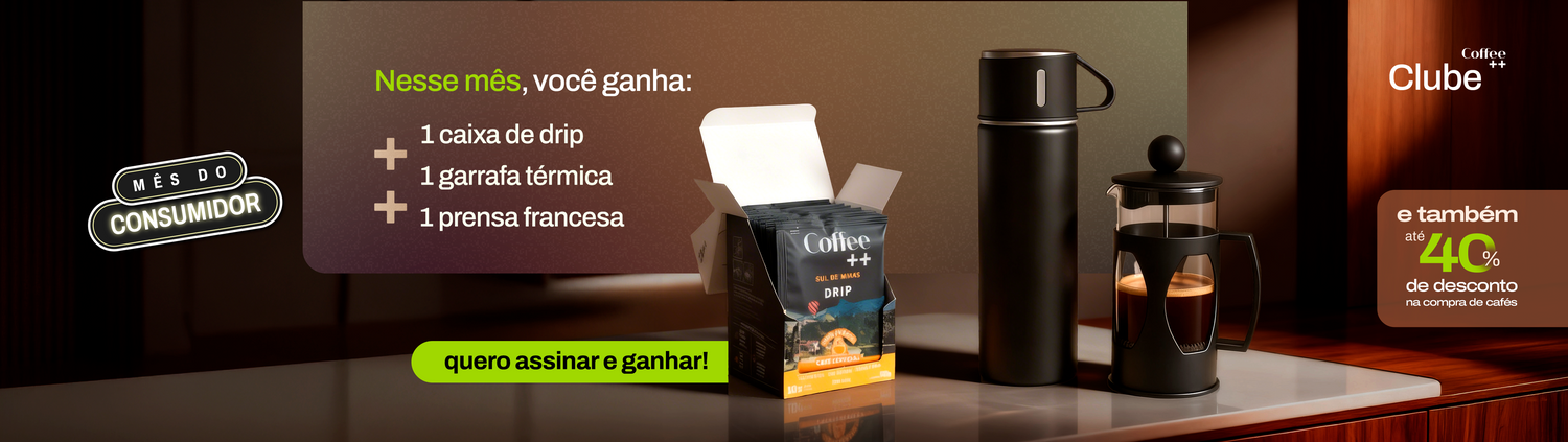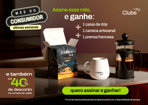 Para quem não quer se preocupar em repor o estoque, o clube de assinatura de café da Coffee++ resolve. É ideal para consumir com frequência e garantir qualidade sempre. Além da comodidade de receber em casa, ainda há vantagens exclusivas: