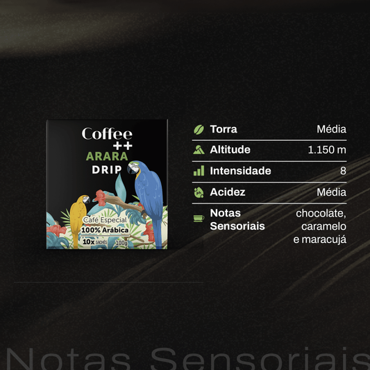 Arara: leve, adocicado e equilibrado, com acidez média e notas de chocolate, caramelo e maracujá.