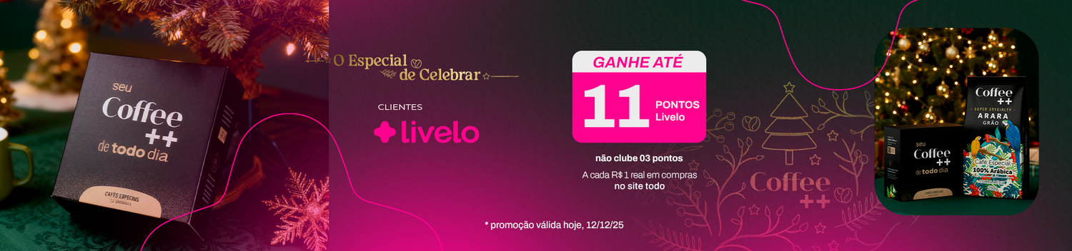 7. ATENÇÃO: O que não acumula Pontos : Não acumulam Pontos Livelo (i) embalagens para presente, (ii) frete, (iii) valores pagos com Cupom de Desconto, gift card e Vale-Compra; (iv) pedidos realizados por pessoa jurídica; e (v) compras realizadas fora do Hotsite. Também não serão creditados Pontos Livelo para (i) pedidos não aprovados ou cancelados; (ii) produtos devolvidos pelo Participante; (iii) caso de suspeita de fraude; (iv) em hipótese de violação deste regulamento ou regulamento do Programa Livelo; e Produtos / serviços que não são vendidos e nem entregues pela Coffee Mais. COMPRAS EFETUADAS EM CANAIS NÃO INFORMADOS NESTE REGULAMETO NÃO SERÃO PASSÍVEIS DE ACÚMULO DE PONTOS LIVELO.
