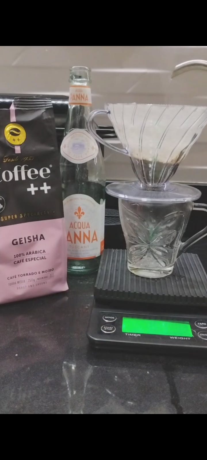 2 - Coloque o filtro no porta-filtro, assegurando que está bem posicionado. Escalde o filtro inserindo a água quente sobre o filtro de pano ou de papel. Isso remove impurezas e aquece o equipamento, promovendo uma extração mais pura.
